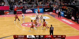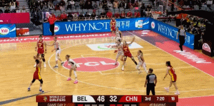 易边再战,中国女篮用王思雨在下半场首发,李月汝与林斯肯斯内线对攻各得4分,韩旭中投与三分连得5分追到差11分。林斯肯斯再度内线得分,中国女篮连得4分追到41-50,阿莱曼德三分命中,张子宇内线再中一球。姆巴卡三分命中,王佳琦两罚全中,张子宇再次被吹罚进攻犯规,比利时女篮再得5分。中国女篮单节17-19再输2分,三节结束中国女篮45-61落后比利时女篮,前三节比赛中国女篮46中17,其中三分11中3,张子宇13中8得到16+9。